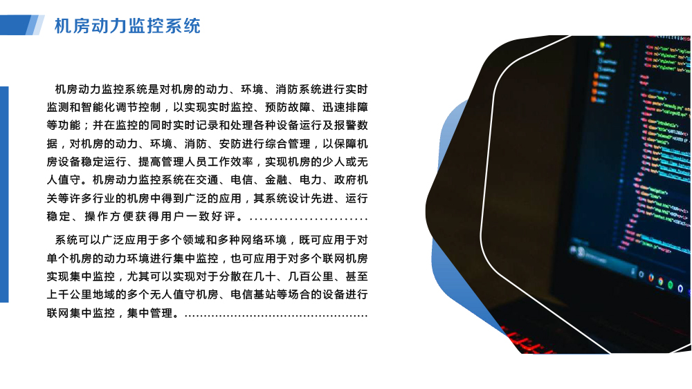 當(dāng)前位置:首頁 >> 主營業(yè)務(wù) >> 設(shè)備管理系統(tǒng) >> 機房動力監(jiān)控系統(tǒng)